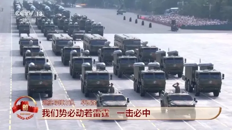 巡航导弹方队 毕西金:受阅的长剑-20A、鹰击-18C、长剑-1000导弹,是实施远程精确打击、全域慑战制胜的“点穴”利器。长缨在手,敢缚苍龙。作为“长剑”执剑人,我们势必动若雷霆、一击必中!