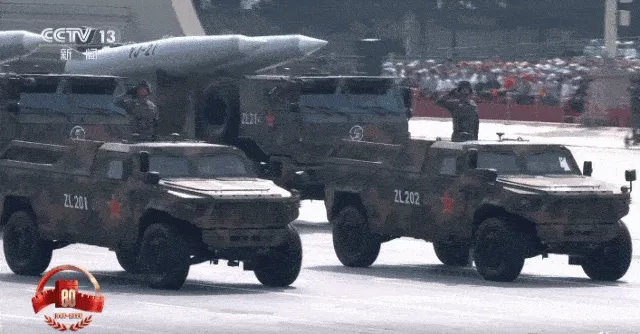 震撼登场的核导弹第一方队,受阅装备依次为 “惊雷-1”空基远程导弹、“巨浪-3”潜射洲际导弹、“东风-61”陆基洲际导弹和“东风-31”新型陆基洲际导弹,是维护国家主权、捍卫民族尊严的战略“王牌”。