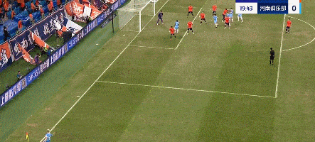 2分钟后,河南角球开到禁区,阿奇姆彭头球攻门再次被韩镕泽神勇挡出。