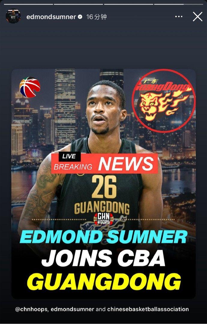 萨姆纳自宣加盟广东男篮随后删除动态,上赛季场均可得36分