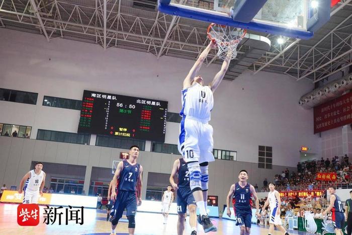 日前,连云港市赣榆区“2025镔鑫钢铁杯”篮球超级联赛——压轴大戏南北区全明星赛激情上演。比赛全程悬念迭起,柘汪镇10号球员霍博文一记势大力沉的灌篮引爆全场;海头镇7号球员尹相日全场独得39分,更在终场读秒阶段命中关键三分,将比分扳平送进加时,彻底点燃现场气氛。最终,比分定格在107:106,随着这场比赛的精彩落幕,本届“赣超”圆满收官。