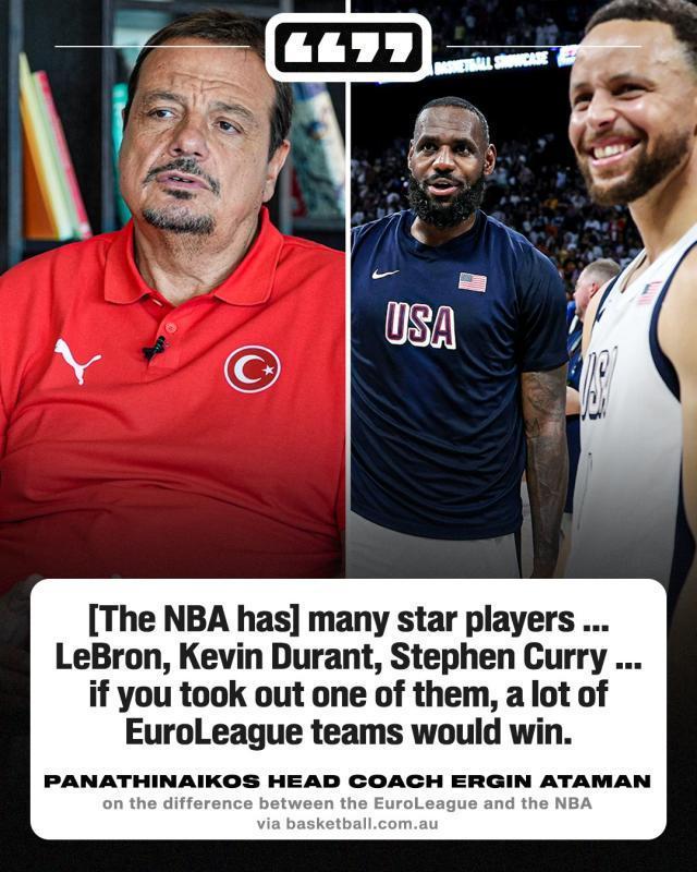阿塔曼还努力为自己的观点寻找论据,比如他提到:“我相信2、3年前,欧洲球队和NBA队伍打了不少季前赛,如果我没记错的话,70%或80%的比赛都是欧洲球队赢了,NBA队伍和欧洲队伍之间的差距没有那么大。